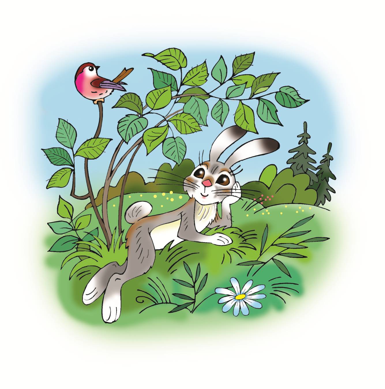 – Прятаться надо не там, где тебя никто не увидит, а там, где ты сам всё вокруг видишь, – произнёс в полголоса Зайка, и с тех пор он всегда ночует под густыми одиночными кустами.
