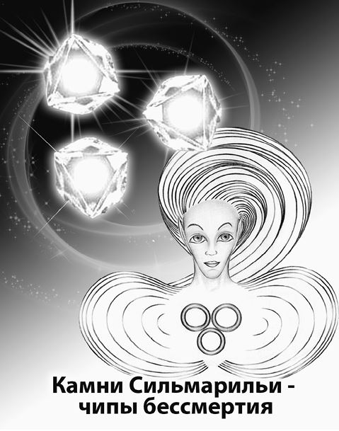 Являлись ли кольца Эльфов сателлитами Главного камня Шантамани, как и камни Сильмарильи? Скорее всего, да, поскольку Жизнь на Земле, заданная божественной программой, записанной в каменном чипе Главного камня Шантамани, клокочет, меняется и борется с Дьяволом, требуя тех или иных поправок, служению которым были призваны как камни Сильмарильи, так и кольца Эльфов.