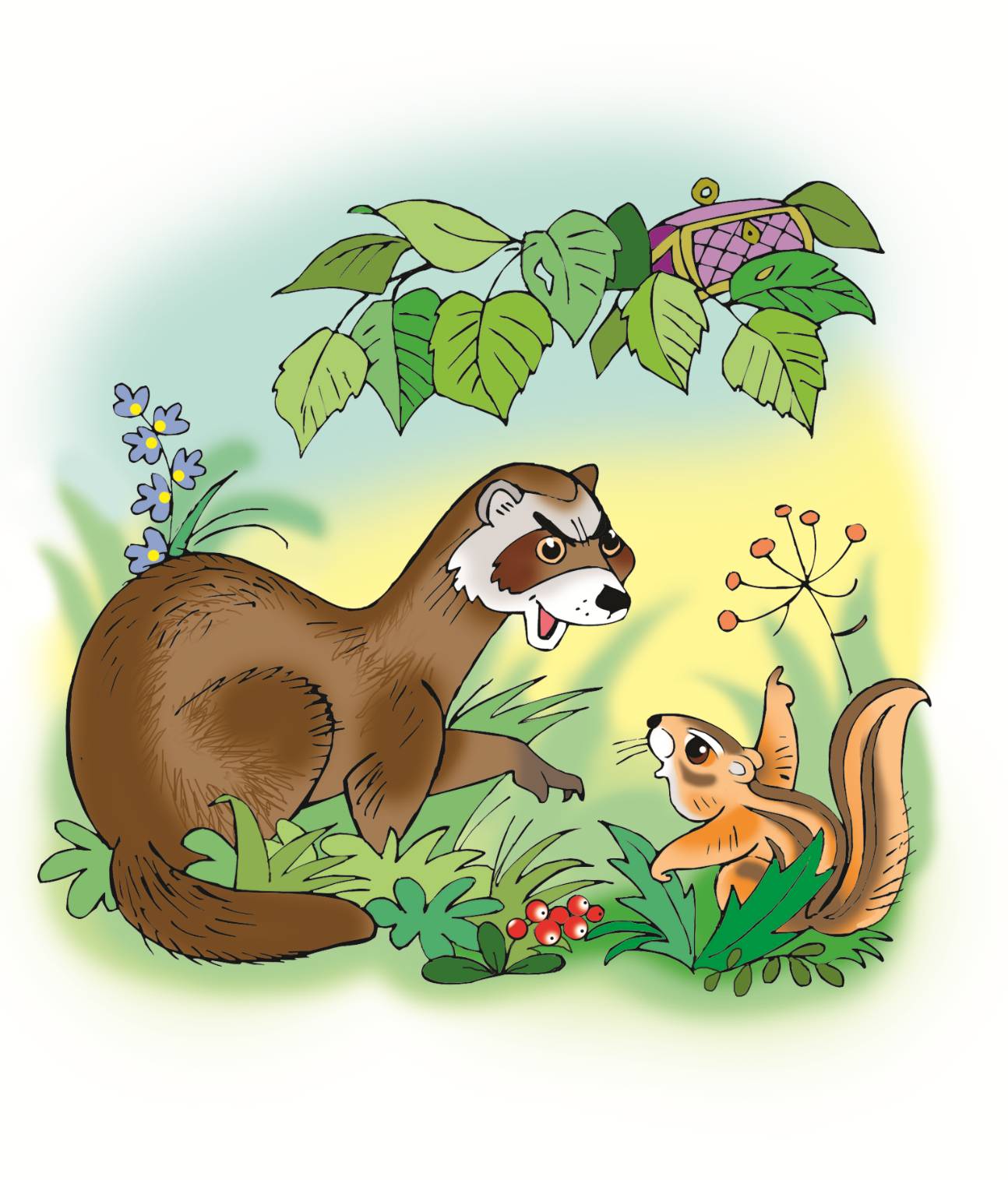 Сверху хорь и бурундук,