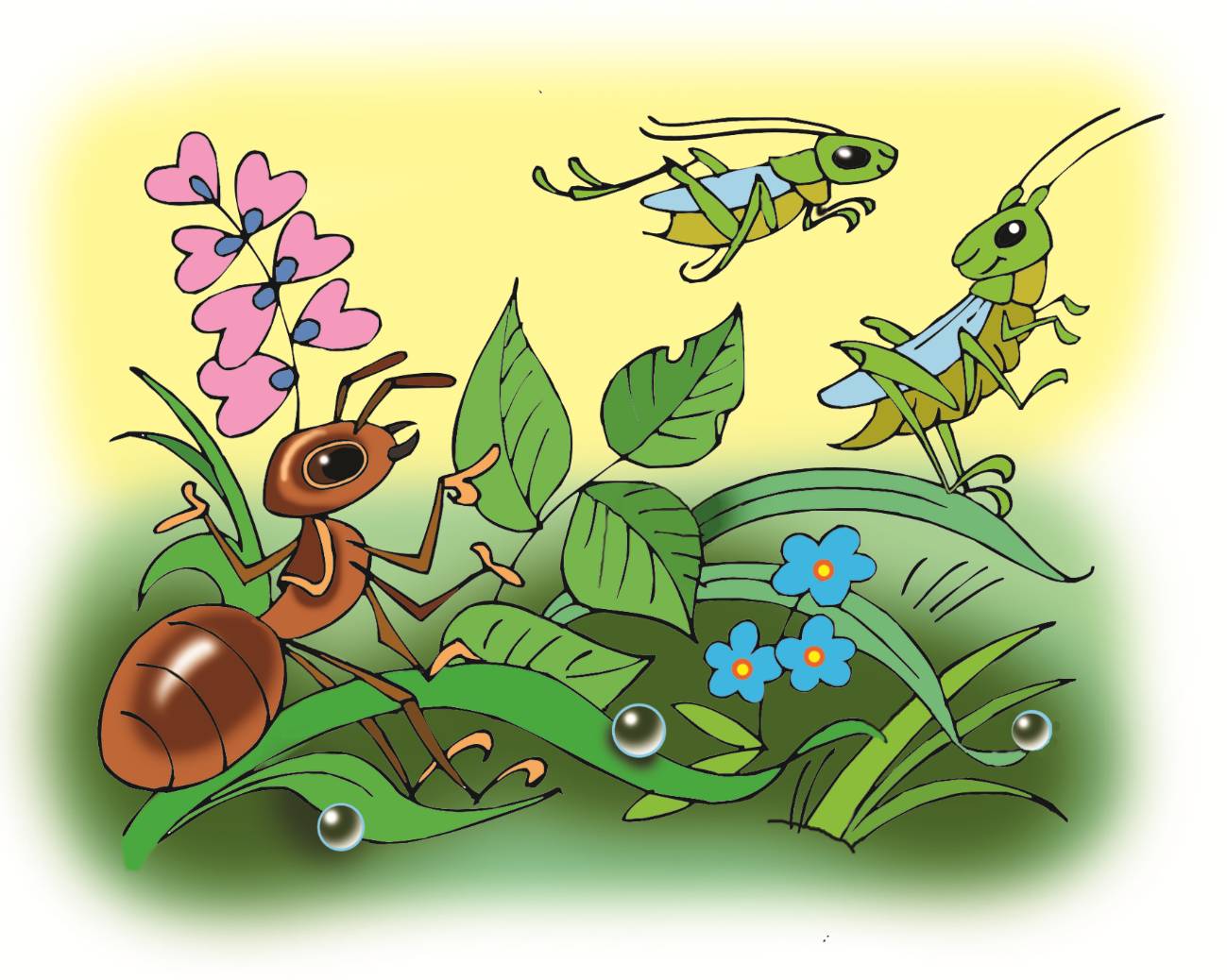 Вот однажды Муравей запнулся о сломанную тростинку и ушиб свою ножку. Присел на соломинку передохнуть, покуда боль стихнет.