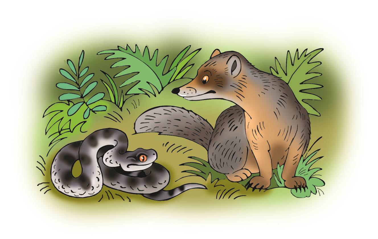 Шёл по садовой дорожке домашний Мангуст. Вдруг из-за ограды стрелой вылетела Гадюка и только собралась его ужалить, как Мангуст от неожиданности жалобно завопил: