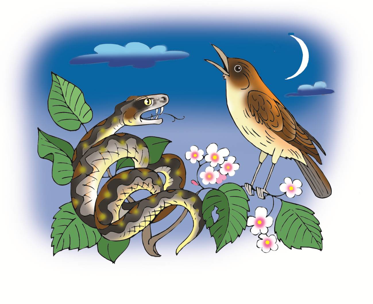 Через некоторое время Змея поверила, что поёт не хуже Соловья и отпустила его на свободу.