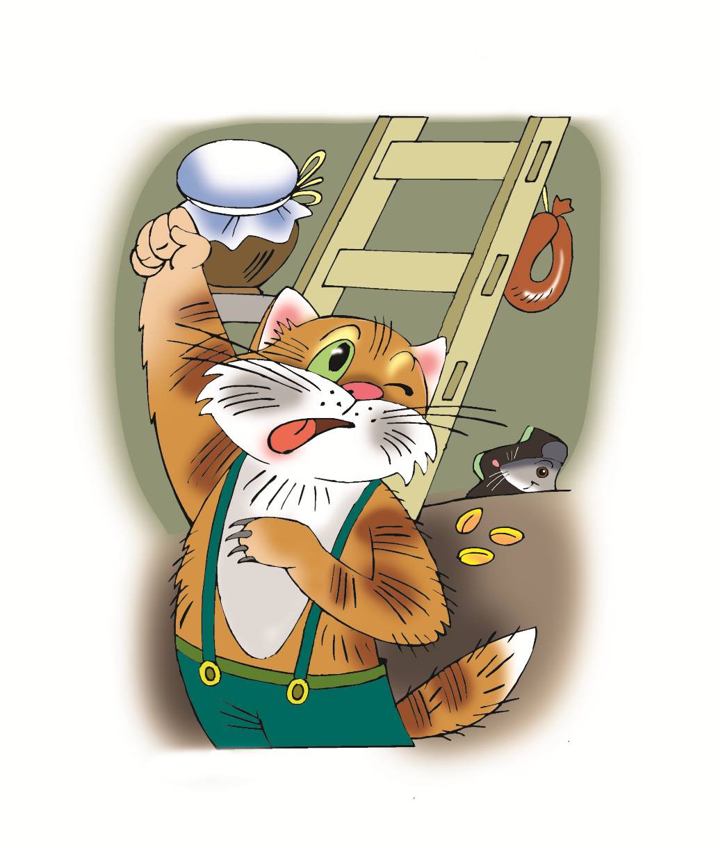 Зачерпнула лапками кучу мышкиного зерна Кошка и передвинула большую часть его к своей куче. Мышка, растерявшись не произнесла ни слова.