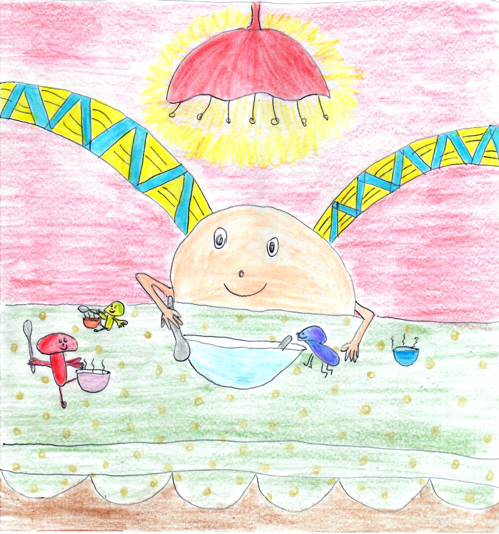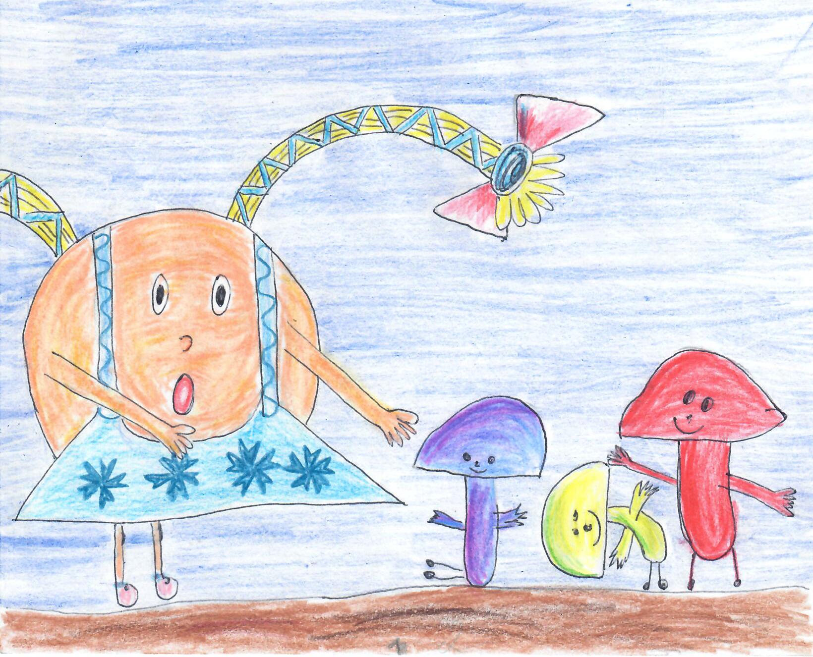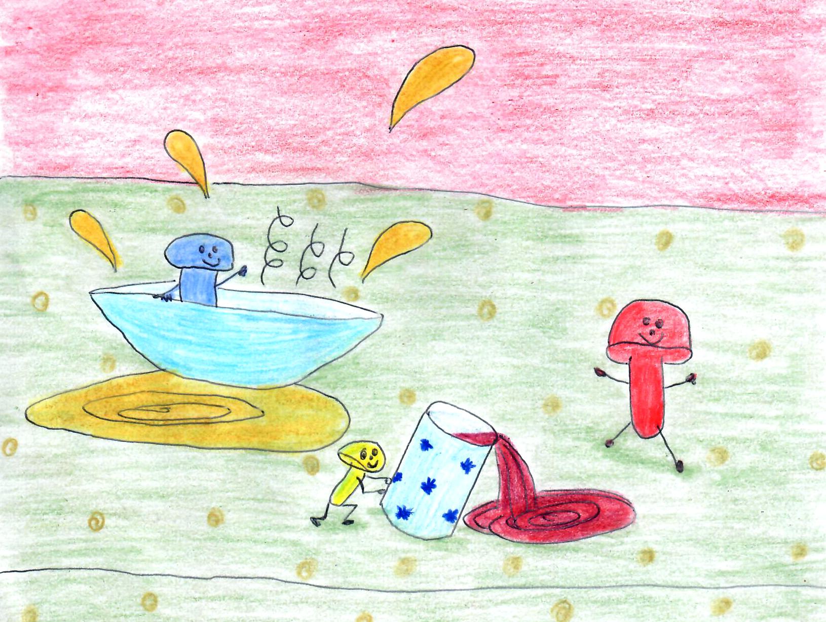 Однажды во время обеда Земля отошла от стола за кусочком хлеба, а когда вернулась, то увидела такую картину: суп из её тарелки был разлит, а грибочки брызгали друг друга из лужи на столе.