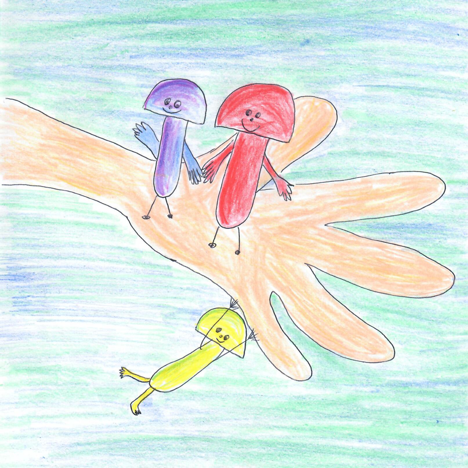 Земле очень понравились эти милые создания. Она аккуратно подставила под них руку, и они забрались на неё. Грибочки выстроились в ряд и промаршировали от одной руки до другой по Земле. Это было немного щекотно, но все же приятно, когда по тебе топают маленькие ножки. Потом они попадали друг на друга и устроили кучу-малу.