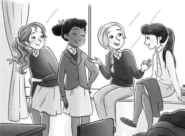 Когда Сара вошла в класс, Бетани, Хлоя и Лили уже были там.