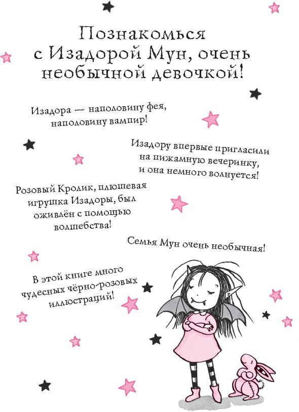 – Изадора собирается в гости к Зоуи с ночёвкой, – сообщила мама вечером во время завтрака. Да-да, я ничего не перепутала. Просто в нашем доме два завтрака: утром и вечером. Мой папа спит целый день и просыпается ближе к ночи.