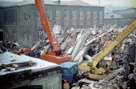 Третий день начали в центре Ленинакана раскопом разрушенного дома прямо напротив развалин храма. Подозревали, что под завалом есть люди. Вскрыли его с одного края до подвального помещения, но никого не нашли. Наш переводчик привлек в помощь группу спасателей-австрийцев, имевших специальные приборы для прослушивания завалов. Они регистрировали живых по стуку сердца. Для прослушивания пришлось перекрыть движение по прилегающей улице и отойти от завала всем, кто не работал с приборами: помешать могли даже легкие шаги по мостовой. Остановили даже бронетранспортер, в котором (по словам офицера внутренних войск) везли в банк 20 млн. рублей, – огромные по тем временам деньги. Это запомнилось, как забавный эпизод.