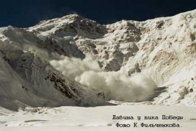 Группа Бондаренко потерпела аварию на сев склоне пика Вост. Победы выше перевала Чон-Терен [11] на 6500 в результате схода снежной лавины 08.08.91, около 19.00. Один участник погиб, один тяжело травмирован. С целью организации помощи, отзываю все группы МАЛ ЮИ с восхождений, и возвращаю в лагерь учебный сбор с ледника Демченко. Может потребоваться дополнительная помощь вертолета и спасснаряжением. Ждите сообщений.
