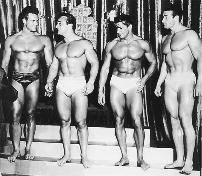 Посмотрите на фото четырех красивых парней конца 40-х годов прошлого века. Они о стероидах никогда не слышали, не говоря уже о применении таковых. Они ели простую здоровую пищу, а главным секретом их достижений были упорные тренировки.