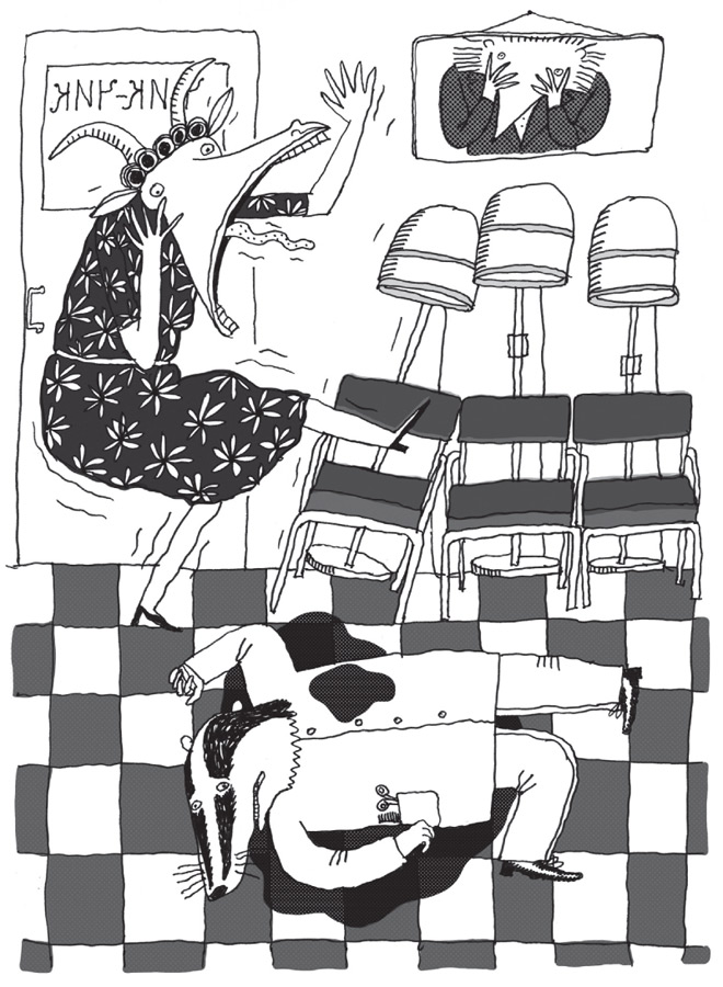 Большое кровавое пятно на белом халате по форме напоминало карту острова Мадагаскар. Вышитая на халате надпись «Чик-чик» прямо над пятном выглядела злой насмешкой. Казалось, господин Эдгар, как и его клиентка, спит – но ему не снились никакие козлята, ему вообще ничего не снилось. Он был мертв.