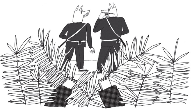 Темно-синие мундиры резко выделялись на фоне зелени, и Джефферсон вовремя заметил неподвижные спины двух жандармов, затаившихся в засаде. Громадных догов, разумеется, потому что жандармский корпус состоял преимущественно из них. На поясе у каждого висели наручники и дубинка. Итак, он не ошибся, эсэмэска оказалась ловушкой, которую он мастерски разоблачил. Он передвинулся правее и обнаружил еще одного жандарма, укрывшегося за сухим деревом, потом еще одного. Сколько же их собралось, этих здоровенных держиморд, чтобы схватить его, такого маленького (всего-то семьдесят два сантиметра вместе с каблуками) и к тому же ни в чем не повинного?