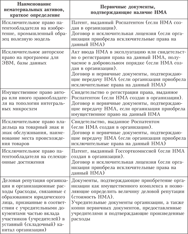 Таблица 3.1. Основания для отнесения активов к нематериальным