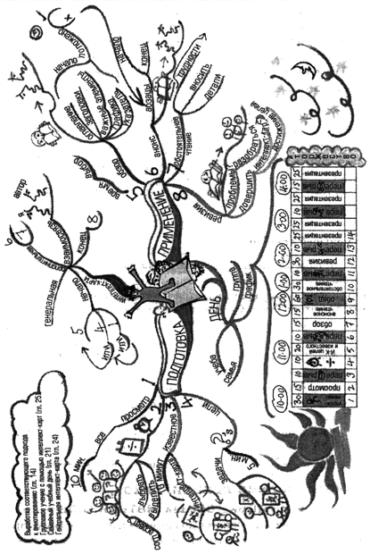 Перед непосредственным обращением к интеллект-карте в ходе повторения пройденного материала имеет смысл начать повторение с «тестовой» интеллект-карты, посвященной всему тому из пройденного материала, что вы в состоянии вспомнить. Такое упражнение позволит вам определить, что вы можете воспроизвести из памяти без какой-либо помощи извне. После этого следует сравнить полученную интеллект-карту с исходной – с целью выправить любые несоответствия и посвятить время тому, что оказалось недостаточно усвоенным.