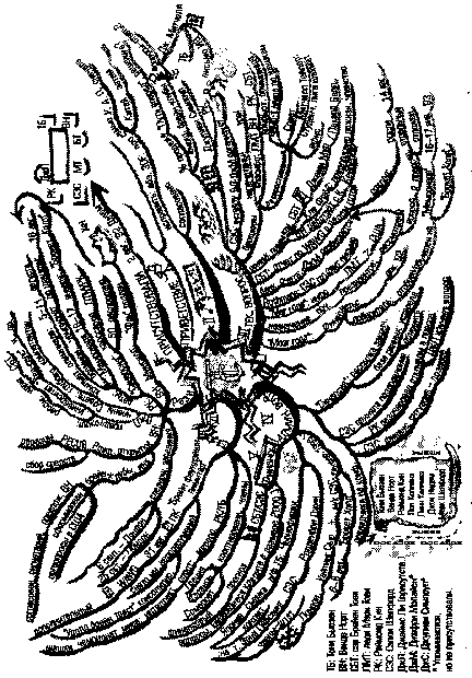 Третья интеллект-карта ( иллюстрация XIX па цветной вклейке) была составлена международным гроссмейстером Раймондом Кином, корреспондентом по шахматам газеты «Таймс» и самым плодовитым автором по вопросам шахматной игры, ее истории и философии. Подготовка интеллекткарты была приурочена к лекции, которую Кин прочел по испанскому телевидению (в программе «En Jaque»). Темой интеллект-карты явилась история жизни и творчества великого испанского шахматиста и писателя XVI века Руи Лопеса, а также интеллектуальные и политические тенденции его времени. Вот суждение Кина: