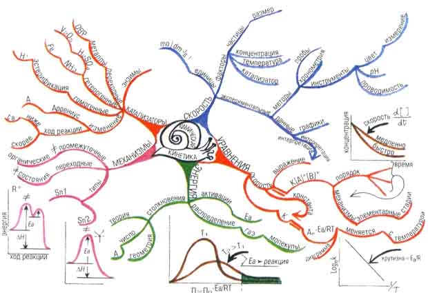 Иллюстрация XVI: Интеллект-карта по химической кинетике, составленная Грэмом Уилером и посвященная целому разделу курса по химии.