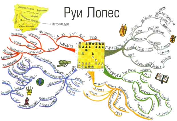 Иллюстрация XIX: Интеллект-карта Раймонда Кина, кавалера ордена Британской империи 4-й степени, составленная им при подготовке своего выступления на испанском телевидении.
