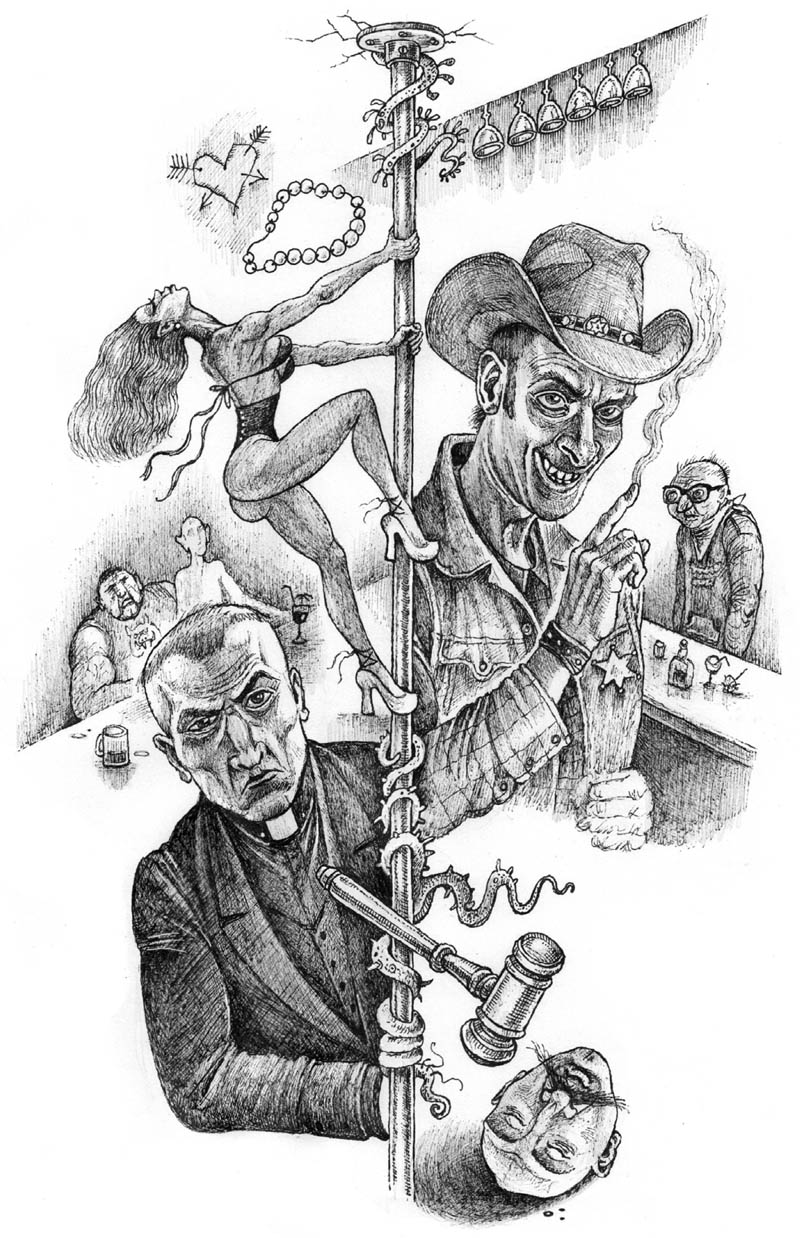 Мы пробрались сквозь толпу людей, клубящихся между столиков, к барной стойке. Сегодня смена Марка Щупальцы. Он неподвижно стоял возле кассового аппарата и наблюдал за залом сквозь громоздкие очки с большим увеличением. Водрузившись за стойку, мы потребовали угощения. Я, как всегда, бокал темного пива. Ник Красавчег решил градус не понижать и попросил виски. Если он наклюкается, мне придется в одиночку все дерьмо разгребать.