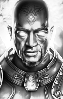 Остальные дочери Баала безмолвно наблюдали за тем, как сияние охватывает фигуры стоящих лицом к лицу брата и сестры. Когда свет померк, Канни, чувствуя наваливающуюся усталость, тяжело оперлась на посох. Силуэт стоящего перед ней воина сначала мерцал, лучась магической энергией, затем призрак замер на месте, обретая физическую оболочку. Перед сестрами оказался огромного роста мужчина с бронзовой кожей, золотыми глазами и причудливым узором из татуировок, нанесенных на его гладкий череп. Одет воин был лишь в парчовую тунику, панталоны и высокие сапоги.
