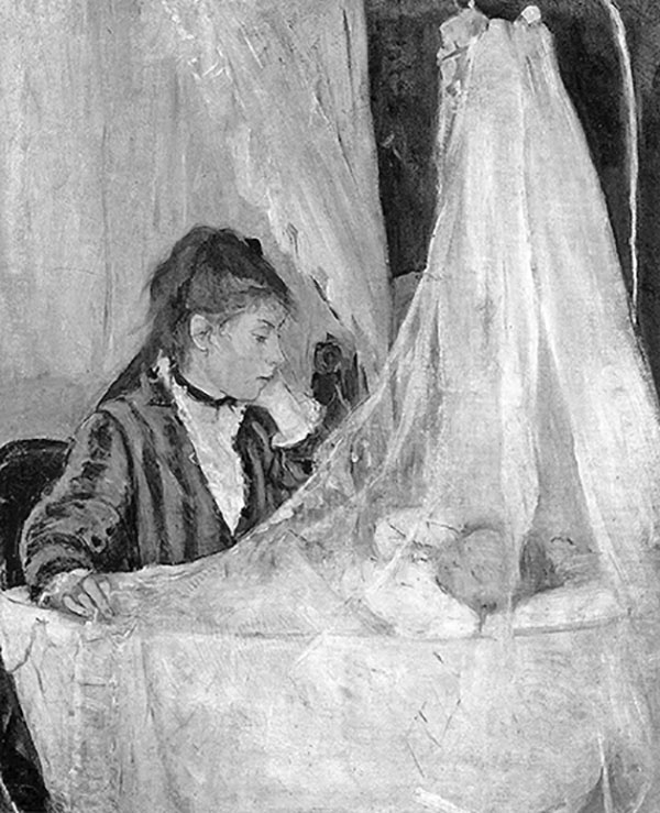 Вчера Эрика, которая через несколько недель ждет первенца, прислала мне картину Берты Моризо. И сопроводила ее такими словами: «Эта картина напоминает мне о тебе. Думаю, ты выглядела бы так, если бы у тебя был ребенок». Я ответила, что женщина на картине выглядит немного уставшей, но Эрика написала, что женщина смотрит на своего спящего ребенка, как смотрела бы на ее месте я. Женщина на картине сидела, положив руку на край кроватки – немного небрежно, как мне показалось, но не нарочито. Эрика возразила, что, по ее мнению, рука на бортике колыбели выражает нежность и заботу.