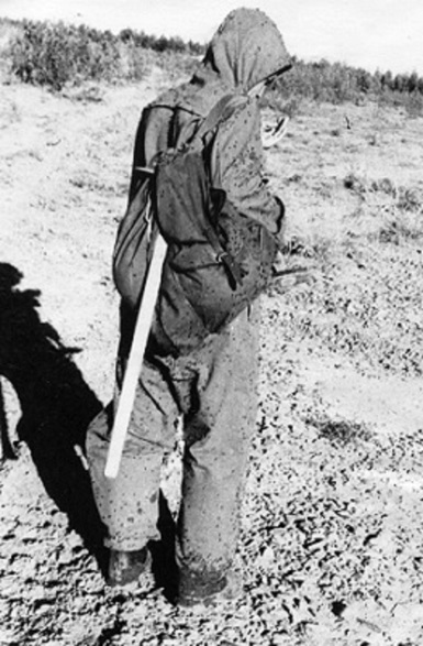 Накомарник практически не помогал – в нем душно, а, если снимешь капюшон, накомарник прижимался к лицу и шее и дальше все понятно… Обычно его надевали поверх капюшона или на кепку, вязаную шапочку или шляпу, в общем на то, что было под рукой. У меня же ничего такого не было и я надевал его на капюшон энцефалитки. Но, преимущественно, старался ходить без него, предпочитая мазаться диметилом.