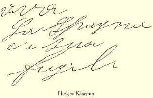 Письма Казерио написаны обыкновенными буквами, но буквы тотчас же становятся огромными, как только он заговаривает о самом себе или заводит речь об анархии или о политических преследованиях вроде тех, которые имели место в Испании, где расстреливали анархистов. Слова "анархия" и "Испания" (в данном примере) занимают полстроки. Это характерный признак эпилептика.