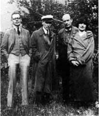 Булгаков среди пречистенцев. Слева направо:С. С. Топленинов, М. А. Булгаков, Н, Н. Лямин, Л. Е. Белозерская.