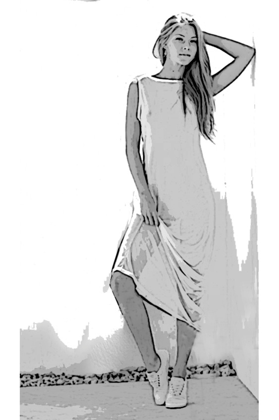 Правое колено чуть вперёд, левая рука на тонкой талии, совершенное в своей тонкости черт лицо поднято немного вверх, на высокой груди натянулась тонкая ткань…