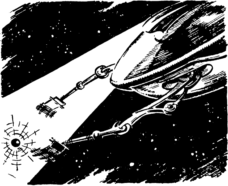 – Ты великодушный человек, Галчонок. Но даже ради тебя формалист пощады не дождется. Впрочем хватит о нем на сегодня. Говоришь, что произошло дальше? Дальше так было. В «Циолковский» я вошел быстро. Автоматика шлюзовой камеры у них действовала, и появился я в каюте, словно некое божество. Во всяком случае англичанин смотрел на меня, как на небесное создание. Наташа рассказывала потом: он никак не хотел верить, что кто-то полетит к ним на выручку. Вот чудак! Ну, объяснили мне в нескольких словах суть дела. Я сразу же велел им всем переходить на «Поиск». Так представляешь, этот Кларк никак не хотел уходить без своих камней. У него их там чуть ли не тонна - набрал на спутниках. С великим трудом его уговорили, до скандала прямо дошло. Наконец, выпроводил их, а сам - наверх, к Сергею. Выстукиваю в дверь по Морзе, колочу ногами - никакого эффекта. Ну, думаю, плохо дело. Пришлось резать дверь лучом. Вошел - и рубку не могу узнать. Словно чернилами кто залил все. На полу, на стенах, на потолке фиолетовая пыль. Пульт наполовину разрушен. А Сергей стоит на коленях, вцепился в штурвал дозатора мертвой хваткой. От кресла одни обломки, а на ногах он уже не в состоянии держаться. Конечно, я прежде всего остановил двигатель. Потом перетащил Сережу вниз, надел на него скафандр. Раскрыл наружные люки. Гриша молодец, держится все время точно рядышком. Перебраться туда было делом нескольких минут. Понятно, нас с Сергеем пришлось сразу же в изолятор - напрямик из шлюза. И его одного не оставишь, да и на моем скафандре уже налипла чернильная погань. На всякий случай даже не раздевался до самой Луны. А сейчас врачи успели выяснить, что все наши страхи оказались напрасными. В живом организме эти микробы довольно скоро погибают. Почему - еще неизвестно, но нам важнее сам факт. Так что здоровье Сергея вне опасности. А я, признаться, перетрухнул, когда увидел его в рубке выглядел он будто умирающий. Это уж потом сообразил, что дело в усталости, в нервном напряжении. Попасть в такую переделку - не шутка! И я на его месте не цвел бы, это точно. Да, он мне признался: был момент, когда появилась у него черная мысль раскрыть рубку, впустить туда Пространство. Заморозить непрошенных гостей, а заодно и себя. Но тут же опомнился. Конечно, эффектно спасти товарищей ценой собственной жизни. Но если есть хоть малейший шанс выбраться из беды всем вместе, самоубийство будет просто глупостью. И он уцепился за этот шанс. Прикинул, когда мы можем вылететь, когда найдем их, и решил оставаться на орбите. Ведь в таком случае встреча произойдет быстрее всего, что и получилось. А если бы мы хоть немного задержались с вылетом, Сереже пришлось бы открыть люки перегородка в нижнюю каюту стала совсем тонкой, и ручное управление должно было скоро отказать. Он уже минуты начал подсчитывать, когда я вошел…