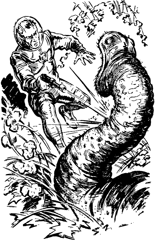 Кажется, предыдущую фразу так и не закончил, и сейчас даже забыл, что именно хотел тогда сказать. Дело в том, что говорю после небольшого перерыва. Долго любоваться удивительным лесом не пришлось. Раздвигая ажурные листья, из чащи вдруг выбралась мне навстречу громадная серая туша величиной с крупного медведя. Выглядит безобразно - ни ног, ни головы, сплошной бесформенный мешок. Что-то вроде слизняка чудовищных размеров. Кожа ноздреватая, влажно блестит и мелко, часто вздрагивает. Словом, вид такой, что даже не слишком брезгливый человек передернется от отвращения.