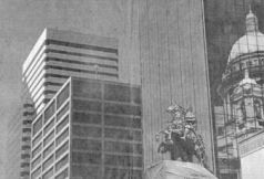 Интересна и связь иллюстраций-коллажей к статье «О вреде и пользе мифологии» с «пикниками». Вот смотрите в нижнем колонтитуле газеты под этой статьёй помещена панорама Петербурга, но на месте, где привычно виден купол Исаакиевского собора, возвышаются башни нью-йоркского Всемирного торгового центра: