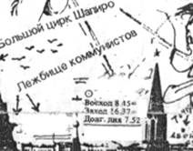 Это был то ли план, то ли рисунок, то ли чертёж-заготовка для игры в шарады. Я долго вглядывался в контуры изображений и надписи, смысл которых при уровне моего знания русского языка не сразу схватывал, пока не наткнулся в правом нижнем углу рисунка на колонку цифр, набранную мелким шрифтом и обозначавшую время восхода и захода солнца, а также долготу дня. Скорее всего я не обратил бы внимания и на эти цифры, если бы колонка не начиналась роковым числом — 8.45 — временем тарана первой (южной) башни ВТЦ. Я вопросительно посмотрел на Холмса.