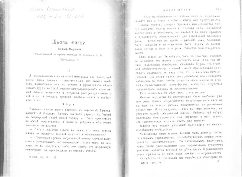 Но рассказ «Школа жизни», как мы подозреваем, на русском языке не публиковался после 1908 года. Тогда он был переведён с польского и печатался в пяти номерах журнала «Вестник воспитания».