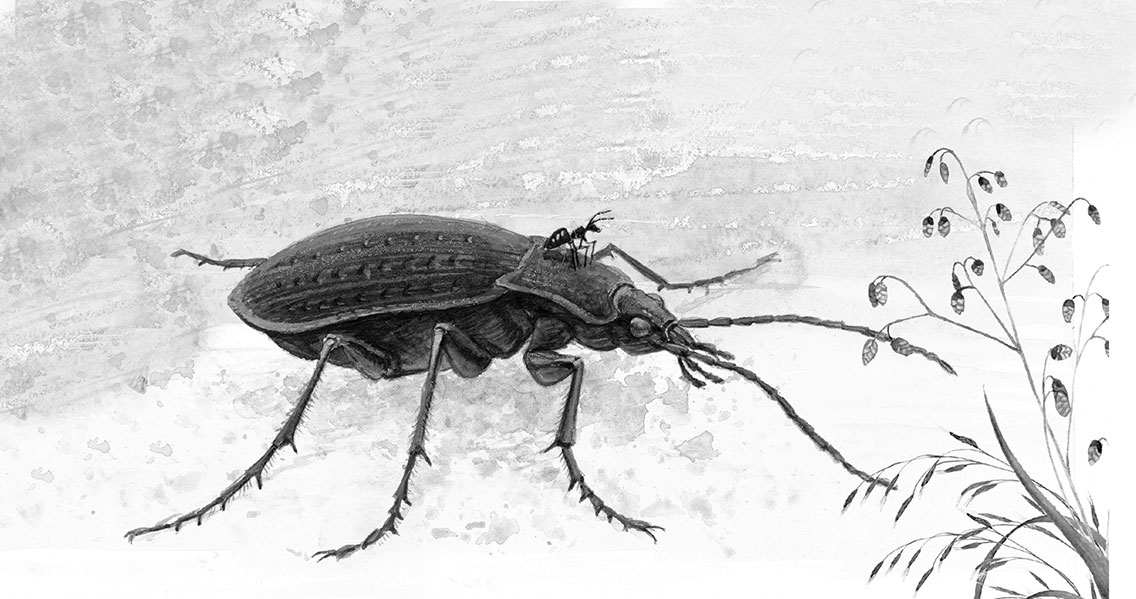 Только успел Муравьишка вскарабкаться Жужелице на спину, она как пустится бежать! Ноги у неё ровные, как у коня.