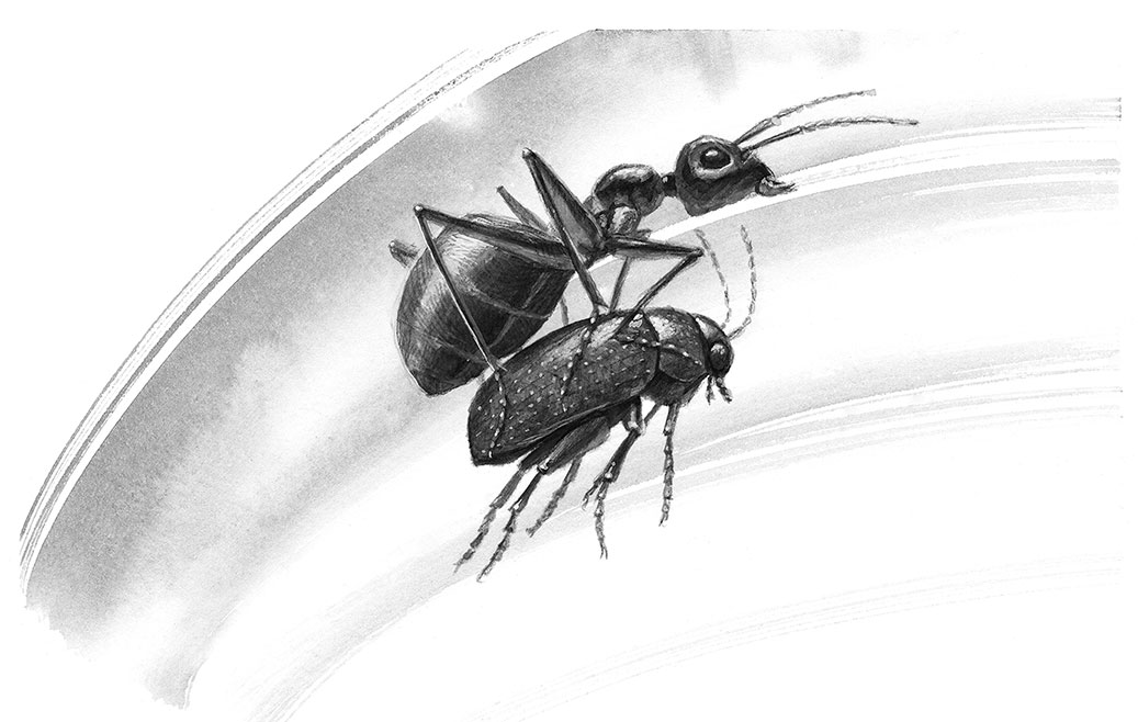 Обернулся Муравьишка – стоит рядом Жучок-Блошачок, чуть от земли видно.