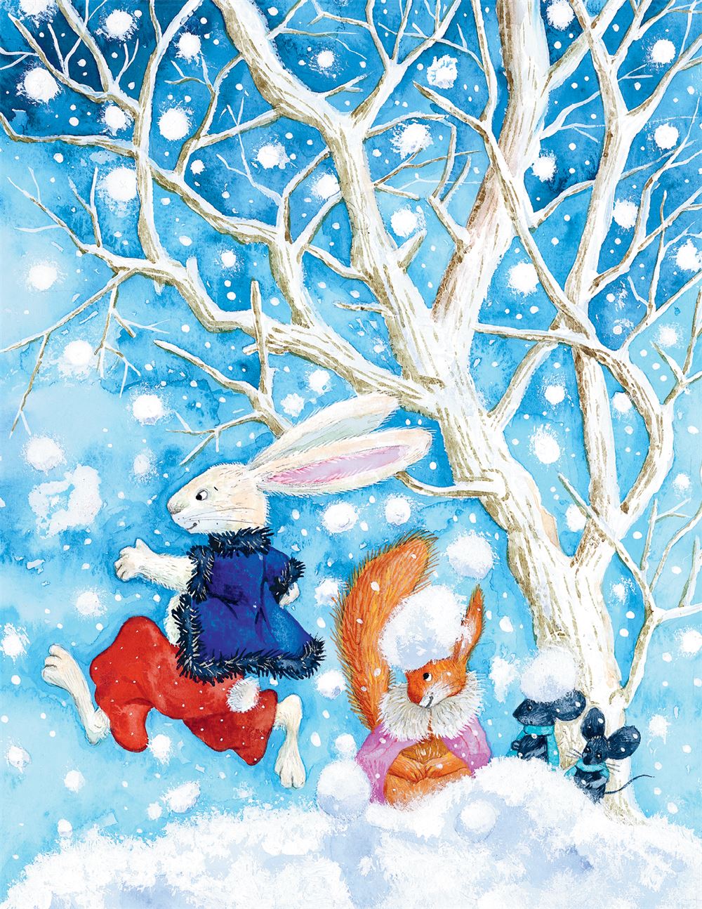 Как тихо в лесу! Даже ветер – уж на что непоседа – и тот улёгся под деревом, свернулся колечком и уснул. Ни шороха. Ни скрипа. Почему вдруг такое затишье? Потому что все в лесу отдыхают: и звери, и птицы. Ни сойка не пролетит, ни белочка не промелькнёт, ни заяц не проскачет. Ну ладно, ежам или, скажем, медведям зимой спать положено, а остальные-то что? Да нет, ни в какую зимнюю спячку они и не думали впадать! А просто решили поспать, потому что ночью, ровно в двенадцать часов, начнётся праздник – наступит Новый год. Из всех праздников самый замечательный, самый весёлый. Тут тебе будут и игры, и пляски, и песни, и все станут дарить друг другу подарки. Веселье на всю ночь! Вот поэтому-то и надо пока поспать-отдохнуть.