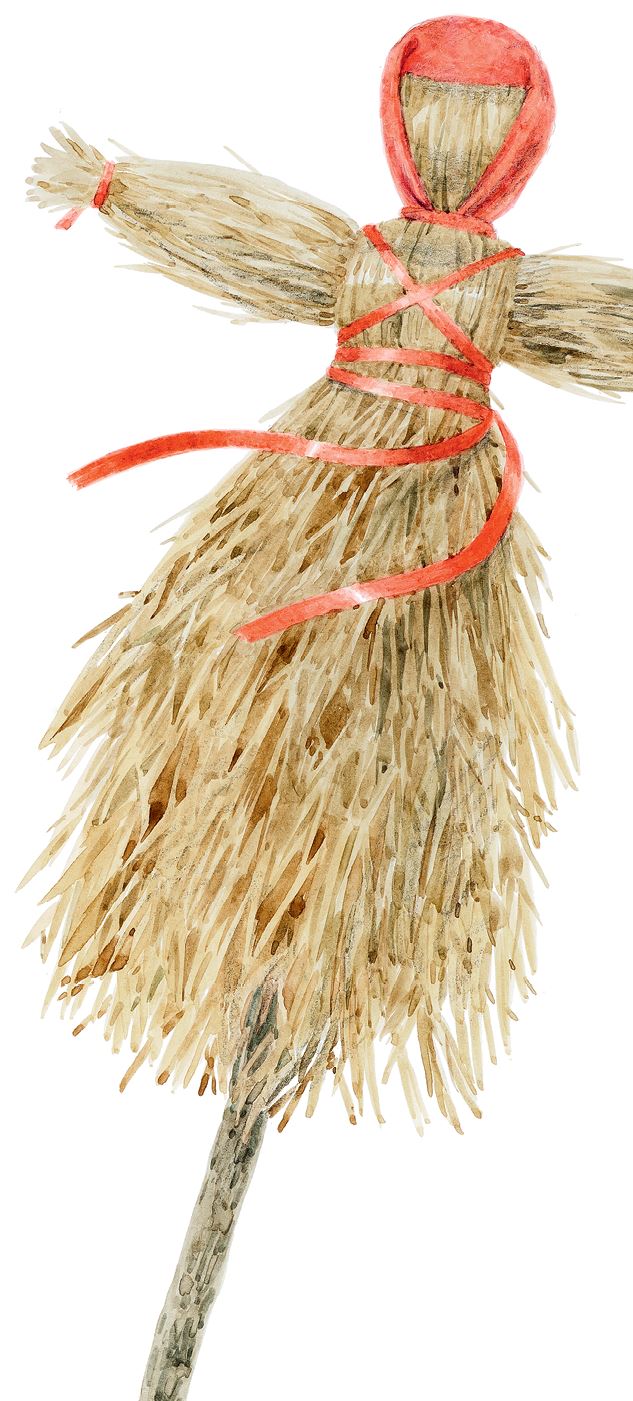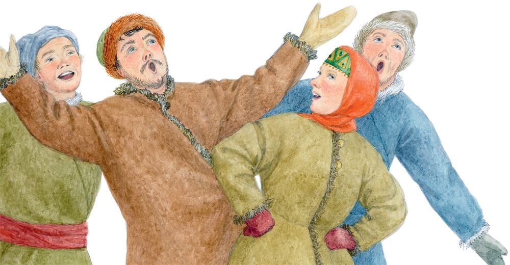 А голоса становились всё громче и громче, слышались всё ближе и ближе. И вот на Красную горку высыпала толпа людей. Они вывезли на поляну сани с чучелом Масленицы, распевая хором: