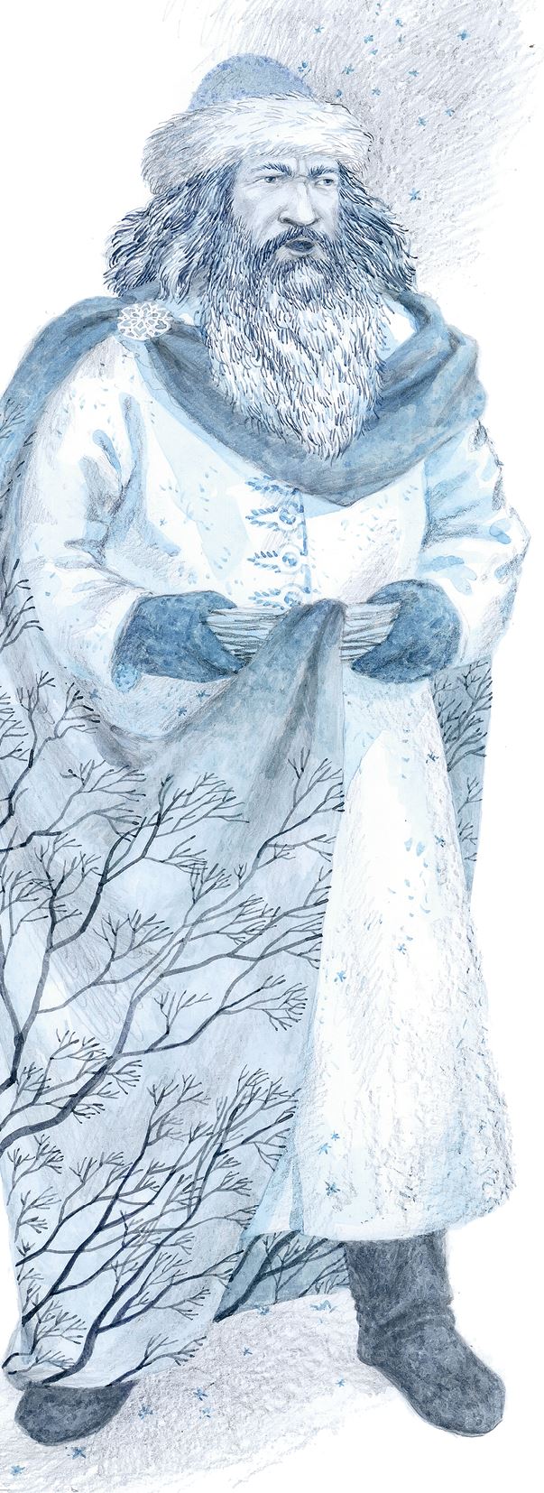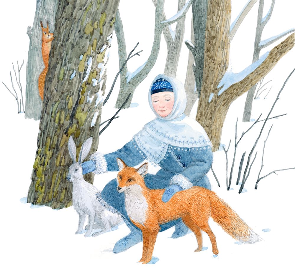 Стал Мороз кликать Снегурочку, и та вскоре появилась из лесу. Голос Мороза и в дальнем тереме её был слышен.