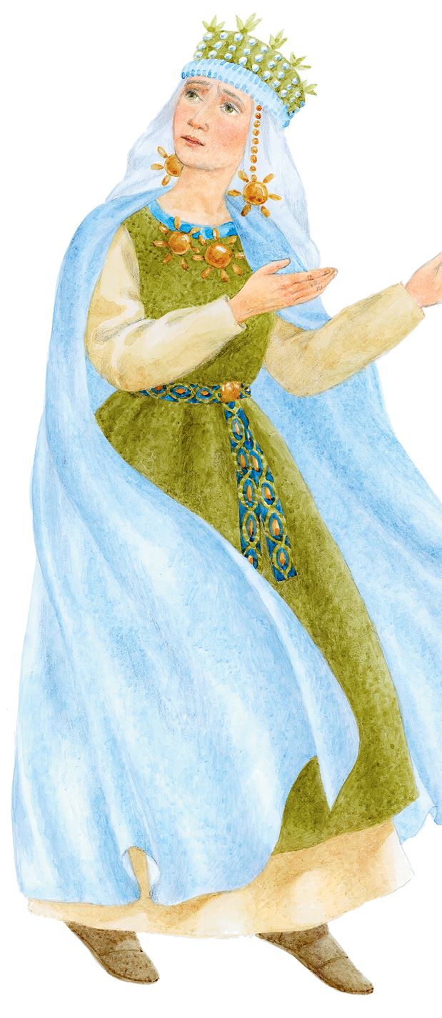 Стал Бобыль расспрашивать Снегурочку, как звать её и куда она путь держит, и не проводить ли её к царю Берендею в его царские палаты?