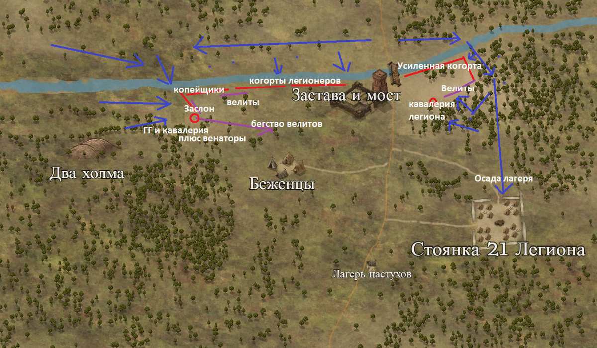 Гераты совершили несколько попыток переправы по центру, но там им даже не дали закрепиться на берегу. Легионеры и гарнизонные лимитаны Тилля отогнали их стрельбой, а самых смелых успокоили в ближнем бою.