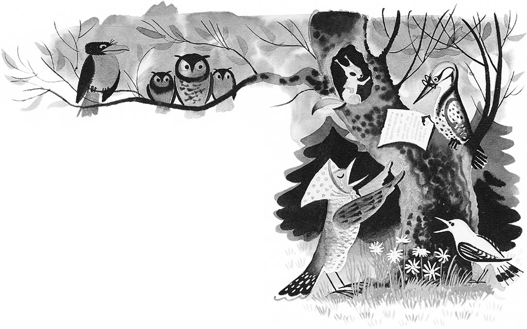 Кинулась тут Кукушка к судье – судом деток отсуживать. А судьёй в этом лесу Дятел был. Мигом дела разбирал. И кукушкино дело скорёхонько рассудил. По совести, по народной мудрости решение вынес: «Не та мать, которая деток народила, а та, что их вскормила, вспоила да на ноги поставила».