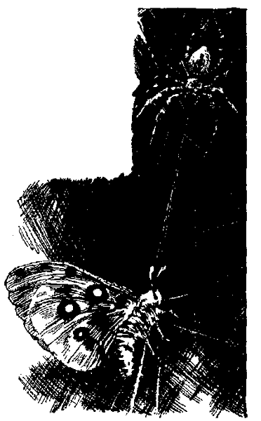 Франт тотчас после захода солнца принимается за дело и раньше других успевает выткать круглую паутину. Затем скрывается в засаду и подстерегает добычу. Нити его сетей очень крепки, их не могут прорвать даже крупные бабочки и саранча. Паук этот отличается исключительной выдержкой: он показывается из укрытия только тогда, когда в паутине уже барахтаются несколько насекомых. Тогда он медленно приближается к каждому из своих узников и поочередно небрежным флегматичным движением прикладывается к нему, как бы целуя свою жертву. Поцелуй этот страшен. Он длится недолго, и за эти короткие мгновенья паук успевает высосать из несчастного насекомого все жизненные соки. Затем он выбрасывает мертвое насекомое из паутины, тщательно проверяет свои сети и важно шествует на прежнее место. Здесь он снова терпеливо дожидается, пока новые жертвы не угодят в ловушку. Но наступил лень возмездия: мне удалось прикончить этого разбойника. Красавец паук попал в мою коллекцию.