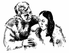 Потупив взор, он вдруг быстро повернулся и зашагал прочь, словно кто-то сильно подталкивал его сзади палкой.