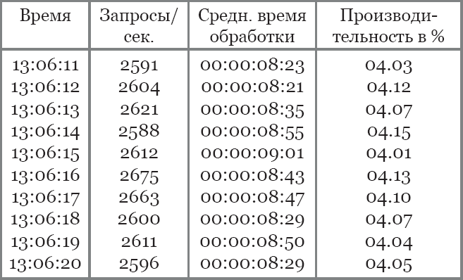 Он остолбенел. Что-то тут не так. Среднее время обработки и производительность росли, а количество запросов практически не менялось. Так не бывает.