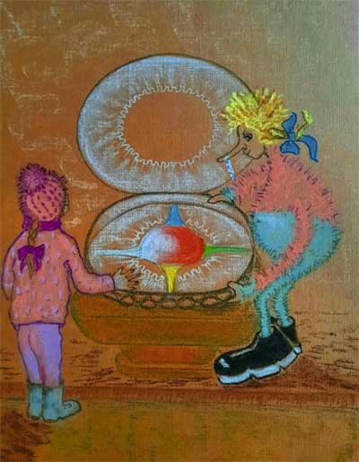 В пещерке, под корнем огромного старинного дуба, за толстой дверкой под рельефной корой, на тюфяке, набитом сушёным земляничным листом, сидела девочка Соняша, потрясённая и удивлённая ярким освещением каморки. Зюзяка налила коктейль из мороженого в прозрачный стакан, похожий на голубой лёд, промокнула сосульку под носом, которая начала подтаивать в тепле, и протянула Соняше.