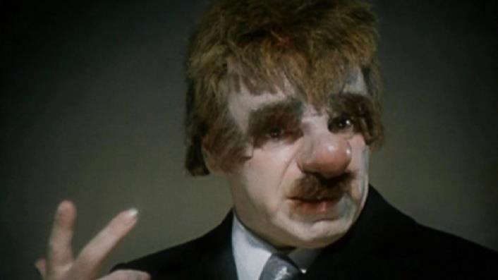 Больше всего этот товарищ напоминал одну из масок Аркадия Райкина, вот эту: