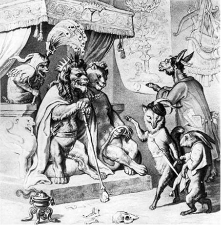 Рейнеке-лис. Уходил со двора он с великим почетом,