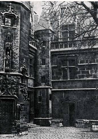 Построенный между 1495 и 1500 годами по заказу аббата богатого Клюнийского монастыря Жака д'Амбуаз, отель Клюни представляет собой выдающийся образец так называемого пламенеющего стиля поздней готики, который предшествовал архитектуре Возрождения. Хотя башенки и зубчатая стена, замыкающая двор, и говорят еще о средневековье, но все это уже не более, чем декоративные мотивы, утратившие свой первоначальный крепостной характер. Выходящий во двор фасад со своей легкой аркадой, острыми фронтончиками и кружевным орнаментом окон и балюстрад исключительно живописен. Выступающая пятигранная башня заключает в себе лестницу, ведущую вверх. Все эти разнообразные элементы придают зданию изысканный вид. Это уже не суровый замок феодала, а жилой городской дом, свидетельствующий о новых вкусах и совершенно ином жизненном укладе.
