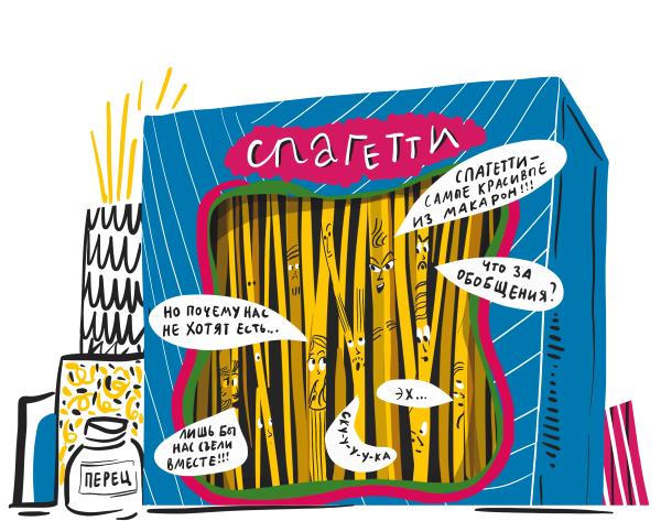 Спагеттина Стеша уже знала, как надо себя вести с бабой Марфой – молчать и слушать. Даже если неинтересно. Иногда лапша пускалась в воспоминания – как было раньше. А раньше на полках, рассказывала баба Марфа, лежала одна лапша. Она была серого цвета и не разваривалась, как ни старайся. И за лапшой стояли в очереди. А очередь была длинной, как самая длинная спагеттина.