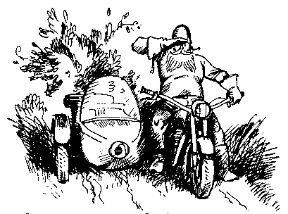 На обратном пути Илья Михайлович вел машину по городским улицам осторожно, с оглядкой — вдруг еще на милиционера нарвешься, прав-то у него не было. Зато как миновали последние здания, показал он свою былую солдатскую удаль. Мотоцикл с тарахтеньем и ревом помчался со скоростью ракеты, прыгая по глубоким колеям и поперечным ребрам корней. И опять свет фары выхватывал из таинственной тьмы вихрем проносившиеся назад черные сосны и блестящие лужи.